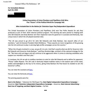 Representing over 384,000 members and their families, the UA advocates for pro-labor policies and works to elect pro-labor candidates to political office. We also assist our Local Unions by facilitating communications with elected officials on key issues of concern to workers and labor organizations.
